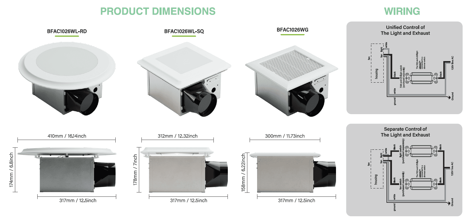 Without access to the attic, with IC rated metal housing, this modern bathroom exhaust fan is powerful as 110 CFM blower to provide a comfortable and quiet living environment with built-in energy-efficient motor engineered; the fan with light is integrated with LED dimmable module and color temperature could be adjusted as 2700K, 3000K, 3500K, 4000K or 5000K with ease. It’s ideal for both new construction building and remodeling applications.